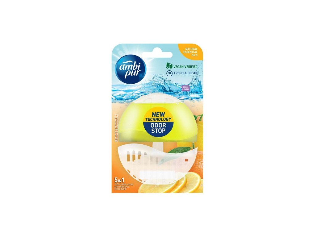 Tegye tökéletessé fürdőszobáját az Ambi Pur WC-tisztítóval. Az Ambi Pur Lemon & Mandarin 5in1 frissességének köszönhetően felfrissíti WC-jét, a vízkőoldó formulának pedig fokozza a fényt és a tisztaságot, így minden öblítés segít tisztán tartani WC-jét az Ambi Pur stílusban. A vízkőoldó formula ragyogóan tisztán tartja WC-jét.