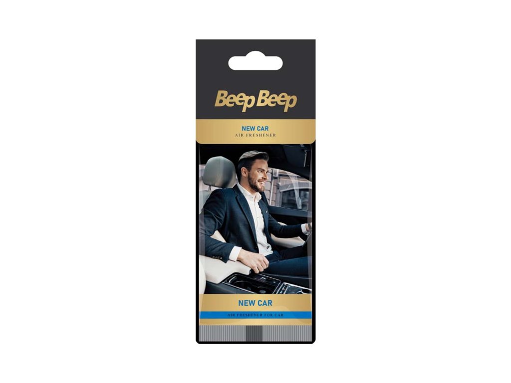 Papír légfrissítő Beep Beep LUX - illatos kártya nyomtatással. Illat: Új autó