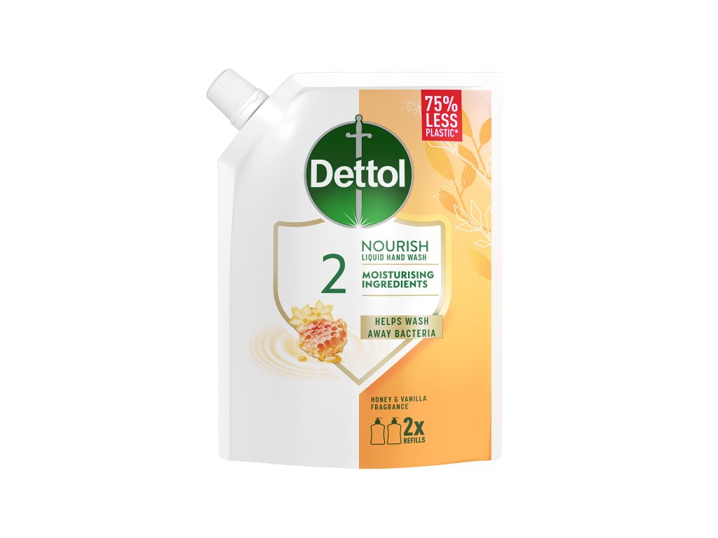 Dettol mézes folyékony szappan utántöltő 2 hidratáló összetevővel, glicerinnel és tejsavval, segít fenntartani a bőr természetes pH-értékét kézmosás után.