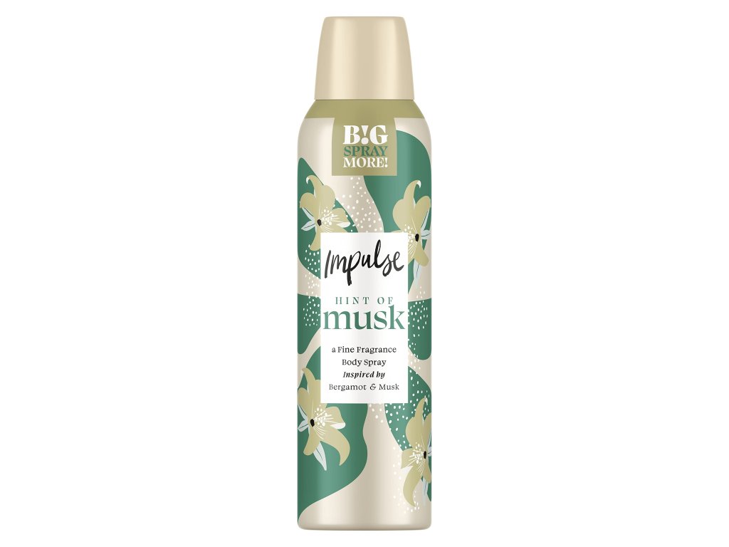 Impulse Hint Of Musk testpermet 150 ml, az Egyesült Királyság első számú női testpermet márkája*, Ez az illat pézsma glóriájába burkol, amelyet jázmin, rózsa és geránium virágcsokor fokoz. Bőrgyógyászatilag tesztelt és gyengéd a bőrhöz, az Impulse Hint Of Musk testpermet lehetővé teszi, hogy testedet vászonként használd, és természetes illatok keverékével fejezd ki identitásodat. Ez a 150 ml-es testpermet tökéletes felfrissülésre indulás előtt, azonnali illatfokozó hatásért. Nyissa ki a tetejét, és fújja bárhol, bármikor a tökéletes, teljes testet betöltő illatért.