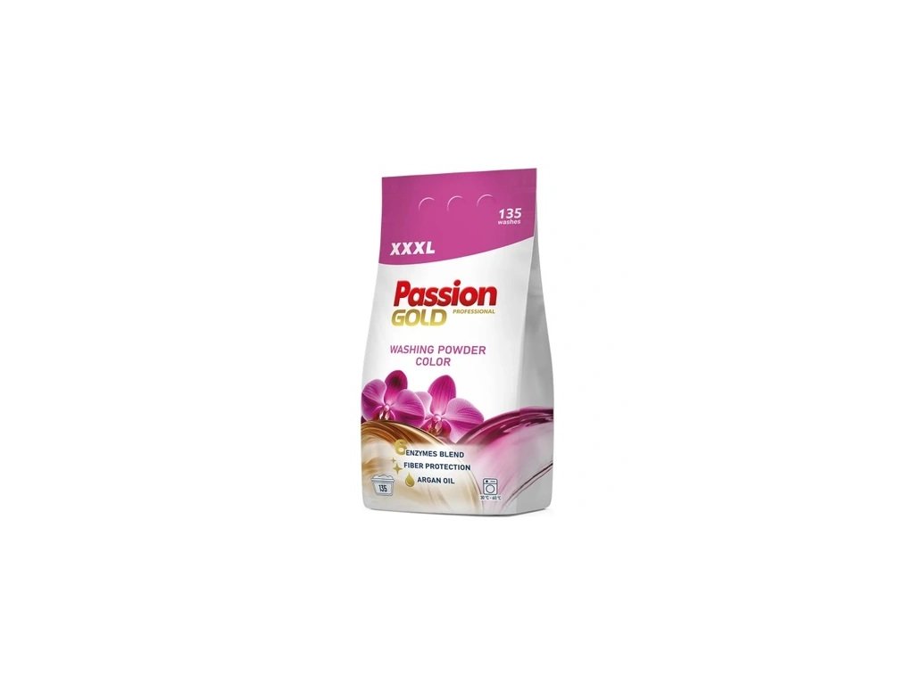 PASSION GOLD mosópor színes ruhákhoz 8,1kg-os kiszerelésben. Akár 135 mosásra is elegendő.