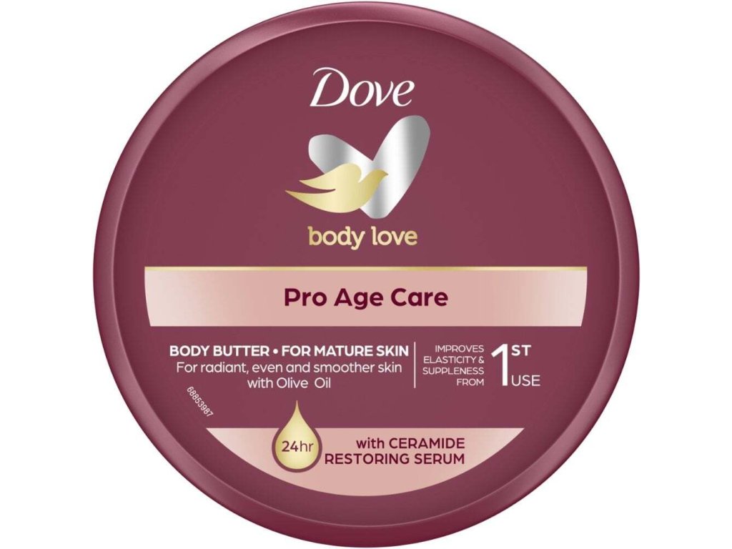 Kényeztesd bőrödet luxusápolással a Dove Pro Age Care testvajjal, amelyet kifejezetten az érett bőr igényeire fejlesztettek ki. Az olívaolajnak és az esszenciális tápanyagoknak köszönhetően intenzív hidratálást és táplálást biztosít. A NutriDUO technológiával készült gazdag textúra behatol a bőr mélyebb rétegeibe, ahol segít visszaállítani rugalmasságát, erősíti a védőréteget és megakadályozza a nedvességvesztést. Bár a vaj sűrű, könnyen kenhető, gyorsan felszívódik, és nem hagy zsíros filmet - csak bársonyosan puha és táplált bőrt.