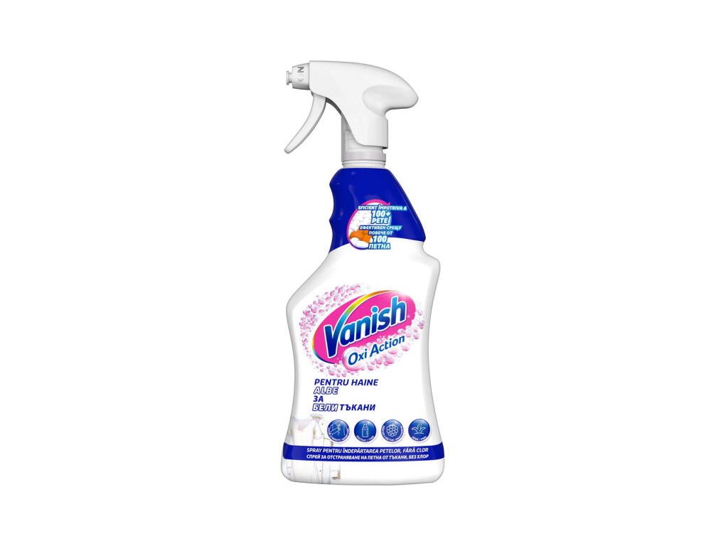 A Vanish Oxi Action antibakteriális tisztítóspray 500 ml folteltávolító spray hatékony formulával, amely mélyen behatol a szálakba és az anyagokba, és eltávolítja még a makacs szennyeződéseket is. A Vanish fehér ruhákhoz való folteltávolítója mindenféle folt ellen hatékony, beleértve a kávé-, bor- vagy fűfoltokat is. Kifejezetten fehér ruhákhoz tervezték, bár színes ruhákon is használható. A legjobb eredmény elérése érdekében a foltokat a lehető leghamarabb kezelje a termék mindkét oldalára történő felvitelével.